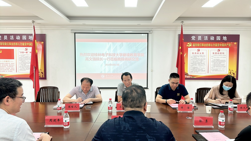 2023年5月17日,桂林电子科技大学继续教育学院高文强院长一行到我院调研交流。学院领导及相关科室负责人参加交流会。