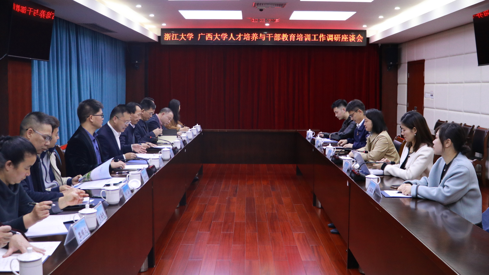 1月11日上午,浙江大学继续教育学院纪委书记、副院长沈燎一行5人莅临我校调研交流。广西大学党委常委、副校长夏国恩出席并主持会议,组织部、学工部、资产经营有限公司、工商管理学院、继续教育学院相关单位负责人参加座谈。