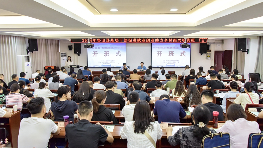 10月21日,2024年鲁山县基层干部促进就业创业助力乡村振兴培训班(第一期)在我院开班,河南省鲁山县人社局副局长肖根民、我院培训中心副主任李文出席开班式。