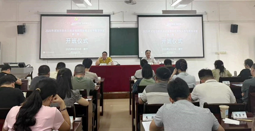 6月23日,2025年河池市税务系统货物和劳务税业务专题培训班(第二期)在米兰体育开班。国家税务总局河池市税务局党委委员、副局长韦立周同志出席开班式并作动员讲话,米兰体育副院长徐华同志出席开班式并致辞。